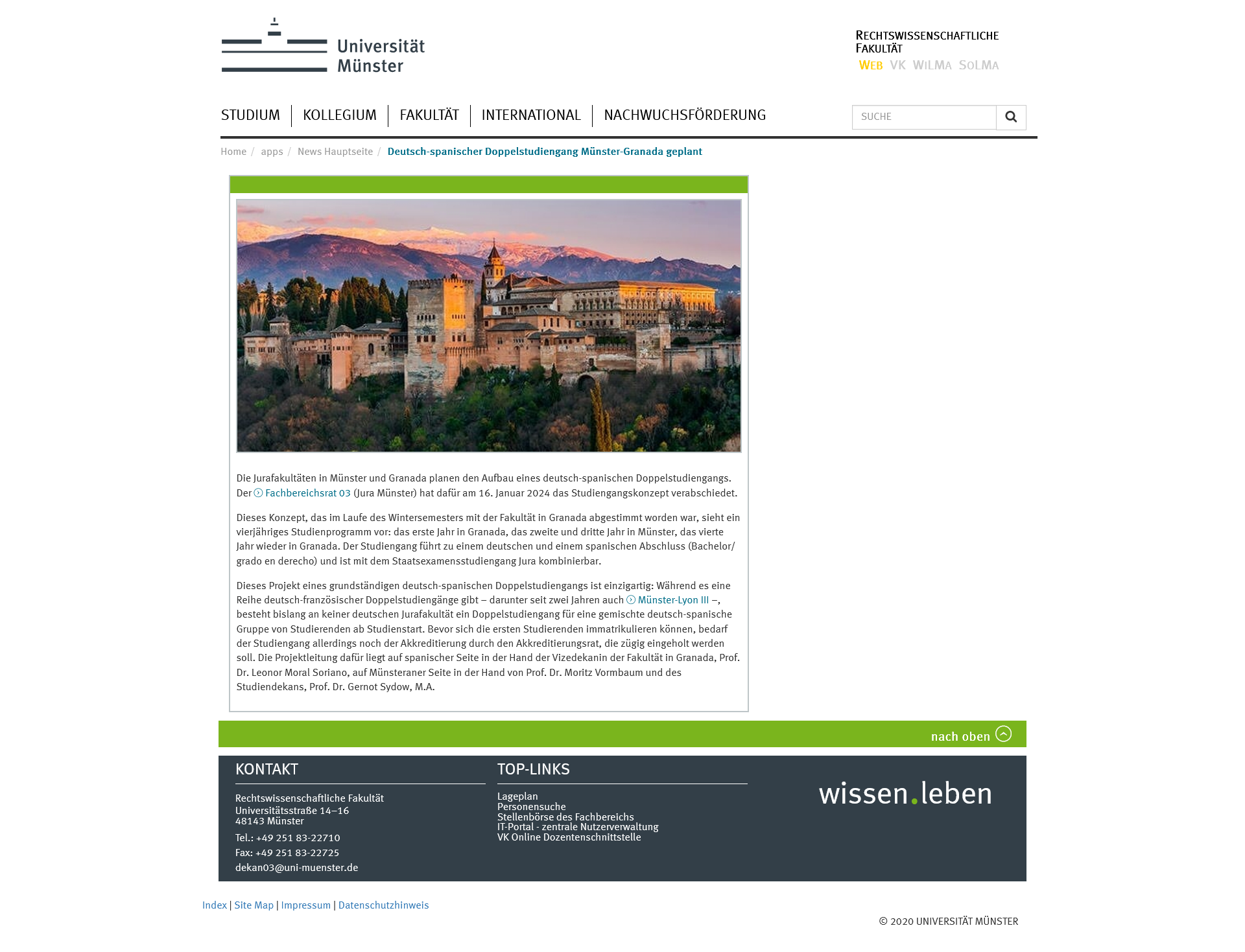Neues BACHELOR-DOPPELSTUDIUM DEUTSCH-SPANISCHES RECHT (L.L.B./ Grado en derecho) an den Universitäten MÜNSTER und GRANADA geplant